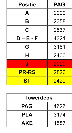 - Lower Deck FWD: 4 PAG/6 PLA. Lower Deck AFT: 5 PLA.WINGED MAX 40 CM.